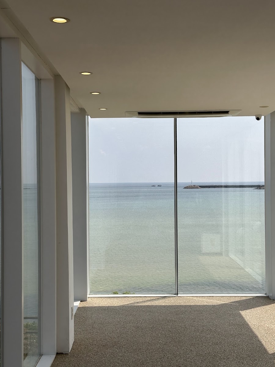 As soon as you step inside, the serene ambiance captivates you. With floor-to-ceiling glass walls, the cafe invites natural light to flood the space, creating a warm and welcoming environment perfect for any time of day. On particularly sunny days, the filtered sunlight dances off the decor, enhancing the cafe's whimsical charm and bringing the beautiful outdoor landscape indoors. The modern yet cozy decor, coupled with minimal distractions, makes it an ideal spot to relax, work, or simply enjoy a moment of pause amidst a busy itinerary.
